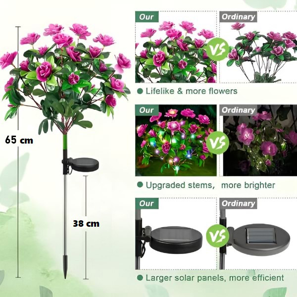 🌸 Transformați-vă curtea cu lămpi solare în formă de azalee realiste, care se aprind automat la amurg.