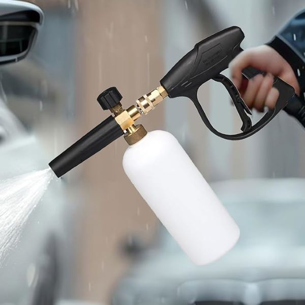 🚗 Schimbați cu ușurință între lancea de spumă și duza pentru aparat de spălat cu presiune.