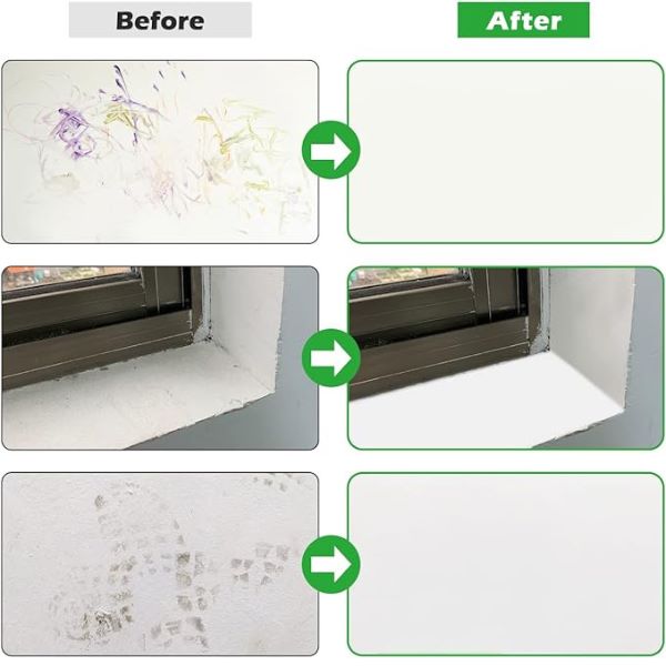 ROOLPAINT îndepărtează eficient pete, urme de încălțăminte și desene ale copiilor de pe perete.