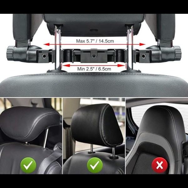 Compatibilitate: Potrivit pentru scaune auto cu tetiere separate și o distanță a spătarului de 7-16 cm. Nu este potrivit pentru tetiere fixe.